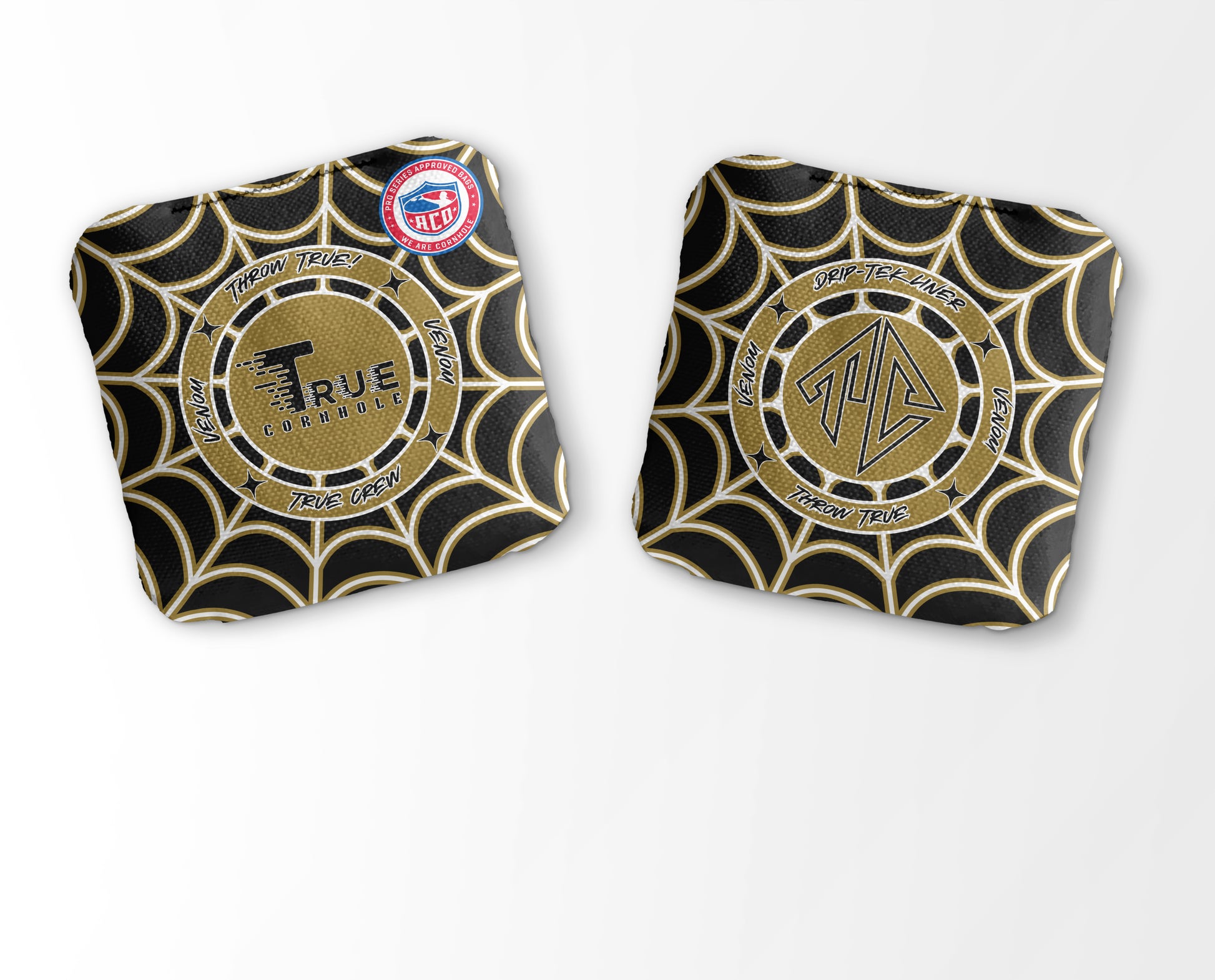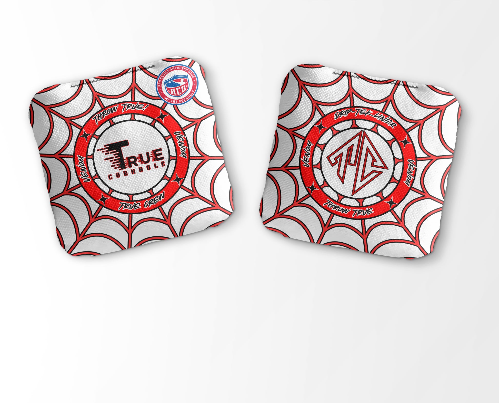 Now with 2 different fill options. This is a bag for the person that like a fast controllable bag. This is a 7/9 speed non carpet bag that's made to run bags in the hole. The Venom has a Tri Blend Fill consisting of mainly disc with a light round and a small round to make it drip in the hole. As with all of the True cornhole lineup this has the patent pending drip-tek liner.